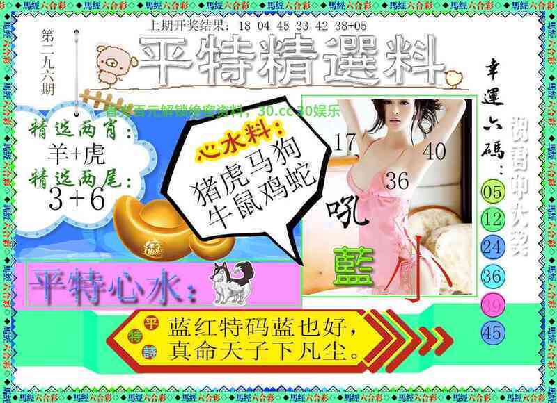 295期【解一句真言】:实实在在不夸张,实实在在,解吉美生肖马蛇龙羊鸡兔 王牌看好波色:绿波+红波 王牌看好单双:双数+牛鸡 |