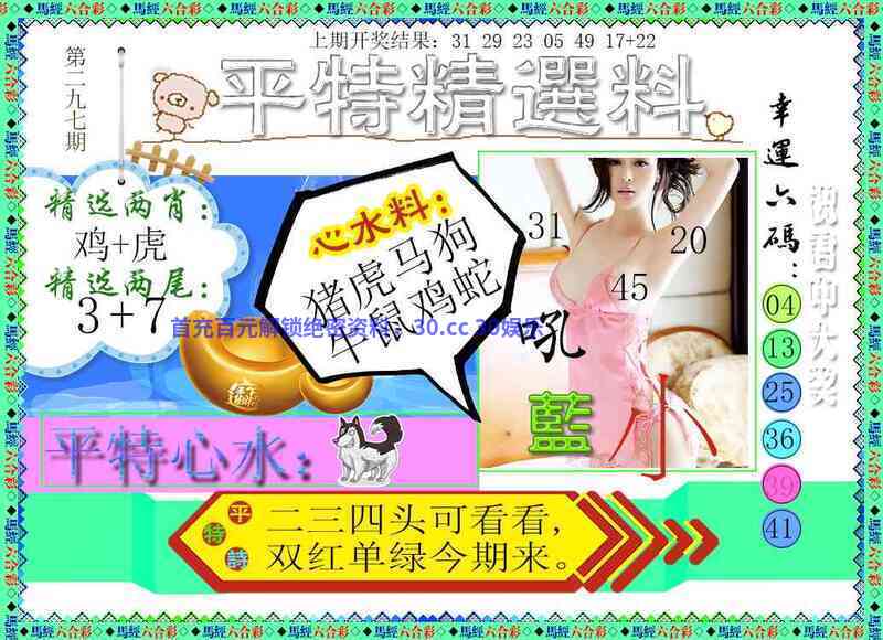 | 297期:三头中特【1头2头4头】开:狗44准 |